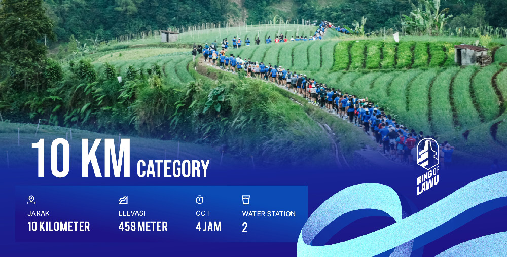 10 km adalah jarak ideal bagi yang telah lama aktif dalam dunia lari dan ingin mencoba di rute yang berelevasi. Inilah rute yang memberikan pemandangan segar yang lebih menawan melewati beberapa perbukitan, pekampungan dan perkebunan yang hijau.